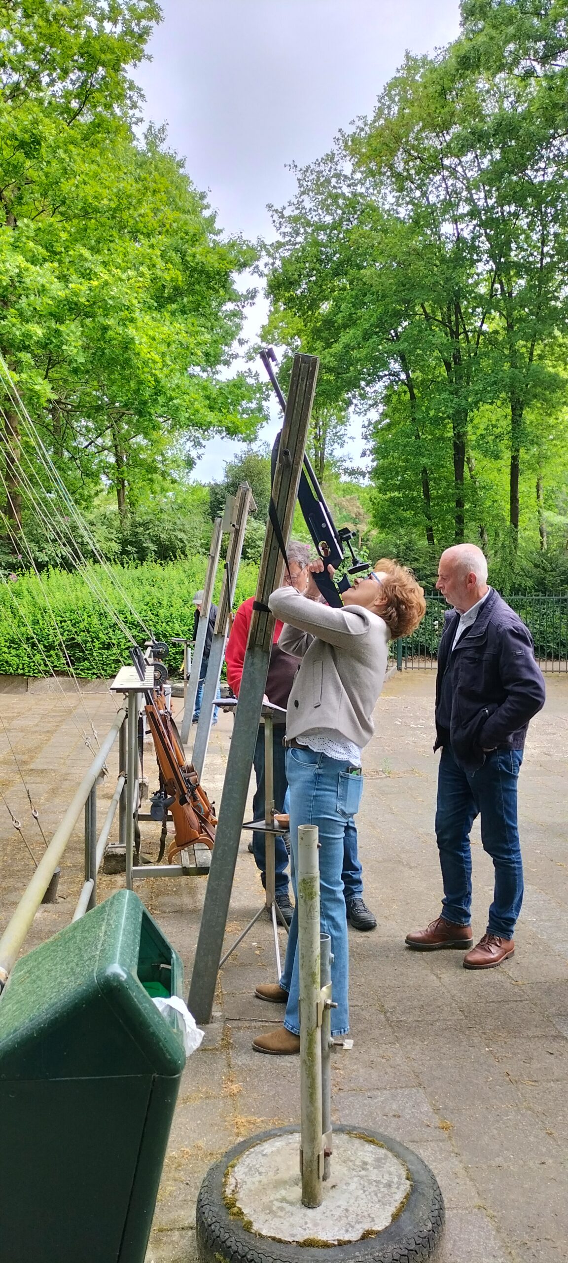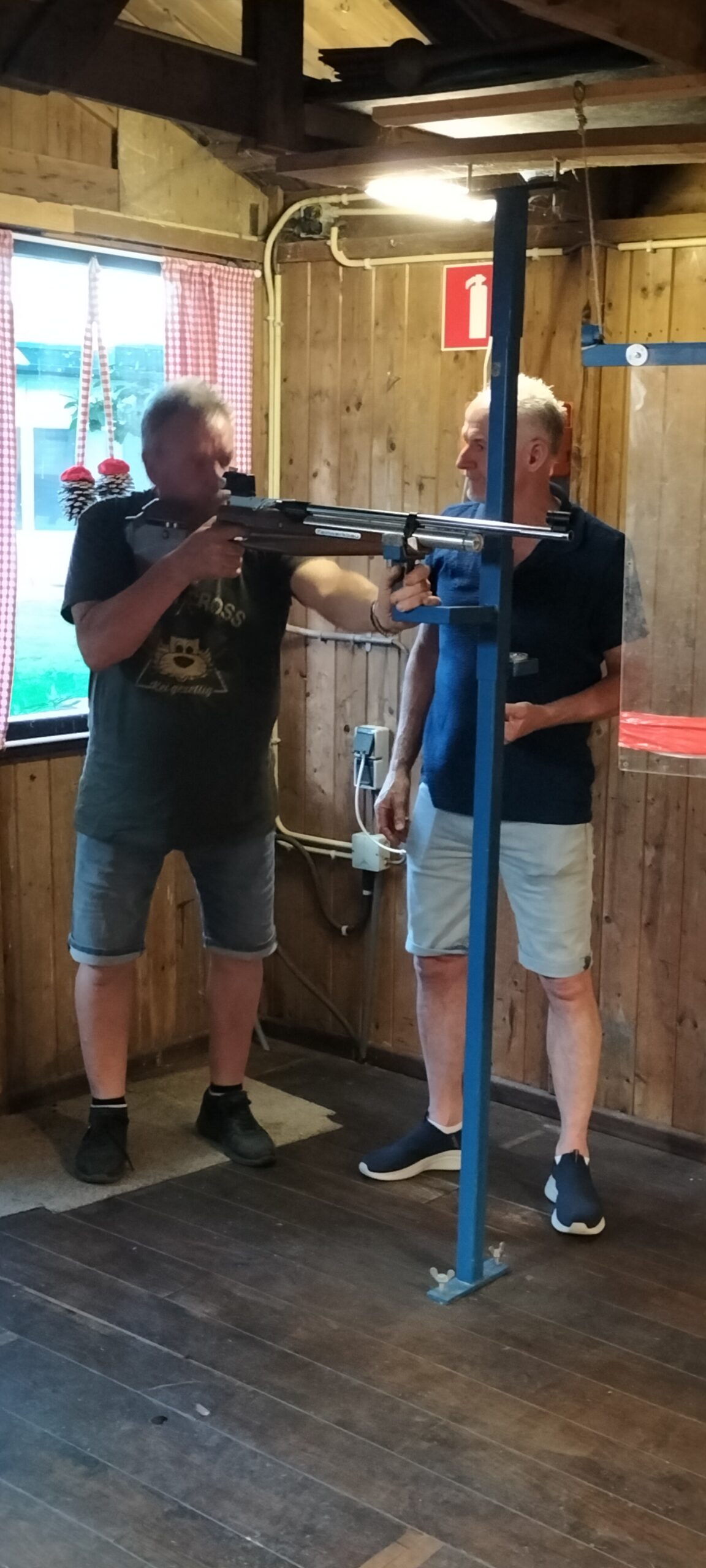 waarbij deelnemers vaak geen lid van de KNTS zijn, ligt het geweer in de Affuit d.w.z. het geweer ligt vast en kan lichtjes bewegen.